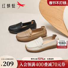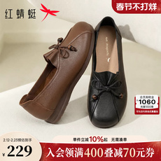 红蜻蜓单鞋女春季新款女鞋平底小皮鞋超软羊皮鞋子舒适软底妈妈鞋