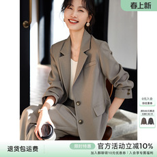 图曼朵卡其绿时尚通勤西装套装2026春季新款气质休闲女士西服外套