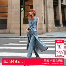 绫致ONLY25春夏新通勤气质翻领无袖中长款牛仔连衣裙女潮