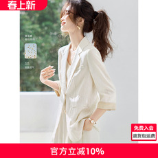 特女士西服亚麻气质长袖西装薄外套2024新品春季女装休闲通勤外搭