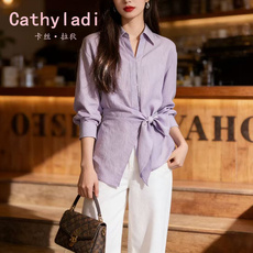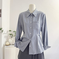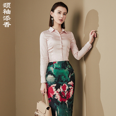 春秋季薄款长袖上衣女高级感气质通勤小衫修身显瘦黑色职业装