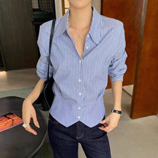 沫晗依美新中式气质优雅轻通勤泡泡袖圆领衬衫女2026夏季新款衬衫