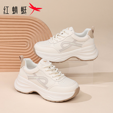 红蜻蜓女鞋休闲运动鞋秋冬新款皮面厚底百搭老爹鞋大码保暖小白鞋