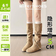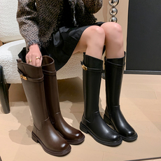 两穿复古英伦风不过膝长筒靴女2026新款胖mm大码显瘦骑士长靴加宽