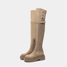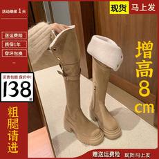 卡其色美拉德靴子女适合粗腿的过膝长筒靴胖mm厚底加绒长靴大码43