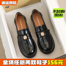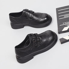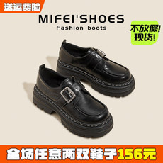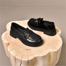 厚底小皮鞋女春季英伦风单鞋黑色制服鞋一脚蹬粗跟乐福鞋大码女鞋