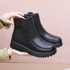 真皮妈妈鞋棉鞋女冬季加绒短靴子大码女鞋防滑软底马丁靴保暖皮鞋