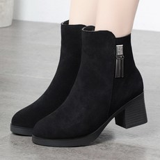 大码女鞋41一43脚宽胖妹妹方头加绒英伦风复古网红瘦瘦短靴女靴40