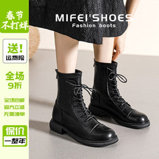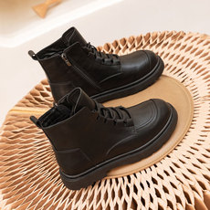 秋冬真皮平底短靴平跟系带中筒女靴大码英伦风马丁靴软底加绒棉鞋