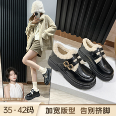 米霏~法式芭蕾玛丽珍毛毛鞋女冬外穿平底羊羔毛豆豆棉鞋大码女鞋