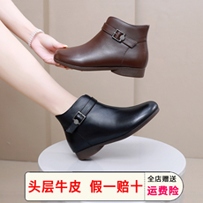 真皮短靴女2025秋冬新款头层牛皮舒适软底加绒保暖妈妈棉鞋大码鞋