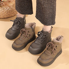 真皮短靴女款冬季羊毛靴子中年妈妈大棉鞋女士厚底加绒雪地靴防滑