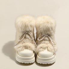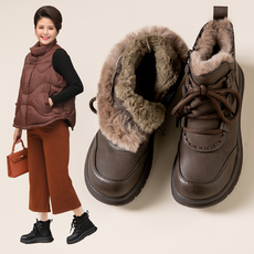 真皮保暖雪地靴冬季加绒舒适妈妈鞋大码平底女靴兔毛加厚防滑棉鞋