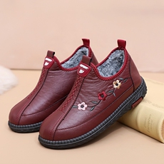 2025冬季新款老北京棉鞋女加绒加厚保暖皮面防水软底妈妈鞋棉靴