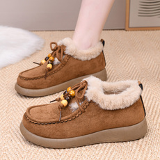 冬季新款加绒保暖棉鞋时尚雪地靴防寒防风老北京布鞋女妈妈鞋厚底