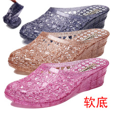 妈妈凉鞋夏季软底中老年防滑工作鞋坡跟中跟平底塑料奶奶女鞋外穿