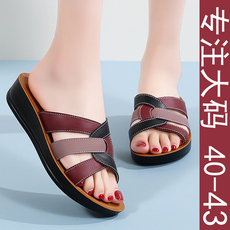 真皮女士妈妈凉鞋女夏季新款坡跟女款女鞋中老年皮鞋41一43皮凉鞋