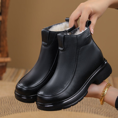 冬季老北京女棉鞋加绒加厚防水棉靴皮面中老年人妈妈保暖奶奶布鞋