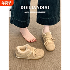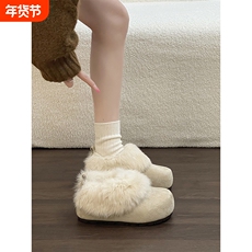 内增高5cm两穿毛呢勃肯鞋女冬季新款百搭加绒保暖一脚蹬厚底棉鞋