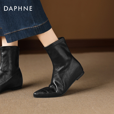 达芙妮黑色平底短靴女冬季2026新款加绒尖头瘦瘦靴内增高马丁女靴