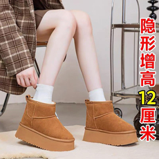 内增高12CM雪地靴女2025年冬季超高跟小个子真皮加绒加厚保暖棉鞋