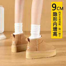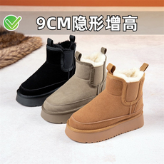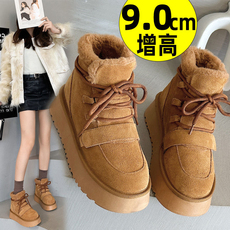 内增高雪地靴女2025冬款厚底防滑加厚小个子保暖短筒东北棉鞋9cm