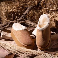 [内增高]厚底纯手工勃肯鞋内增高10.5cm羊皮毛一体一脚蹬雪地靴女