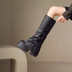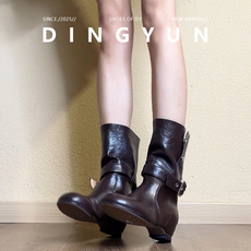 复古真皮厚底单靴女2025秋冬新款坡跟内增高女靴松糕短筒马丁靴子