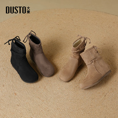 大东时装靴女鞋2025年冬季新款复古内增高中跟圆头平底黑色堆堆靴