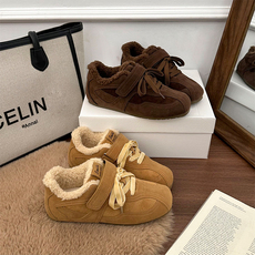 复古平底加绒德训鞋女2025冬季新款内增高毛毛鞋勃肯鞋保暖棉鞋子
