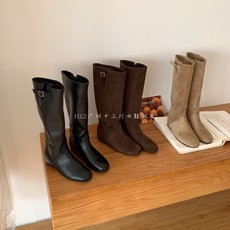HZ2实拍复古绒面内增高长靴女2025秋冬新款百搭休闲马丁靴骑士靴
