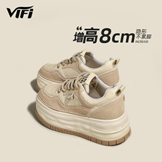 真皮内增高小白鞋女2025新款秋季厚底松糕小个子运动休闲百搭板鞋