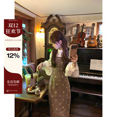 韩版复古优雅气质经典英伦格纹女春秋冬修身毛呢格子背心裙连衣裙