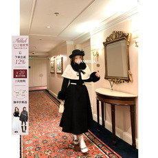 安妮不火 千金风呢子连衣裙&钉珠斗篷套组女微胖大码气质两件套装