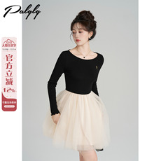 秋冬季新款学院风拼接连衣裙女收腰显瘦气质设计感茶歇长裙子