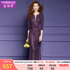 宸妙艳新款金丝绒连衣裙高贵优雅气质修身显瘦大码妈妈装A字裙