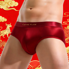 轻奢缎面冰丝高端酒红色本命年男士内裤男三角结婚礼物礼盒装vckv