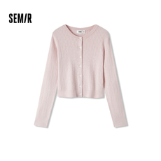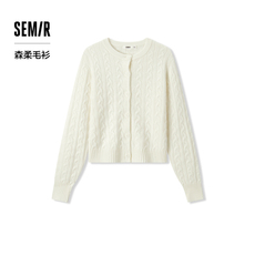 [商场同款]森马针织开衫女短款绞花修身秋季2024新款圆领衣服甜美