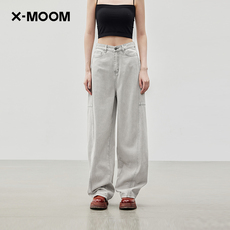 【商场同款】X--MOOM秋季新款复古烟灰色全棉牛仔香蕉长裤女
