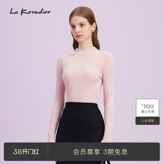 La Koradior拉珂蒂商场同款粉色气质收腰打底针织衫半高领套头衫