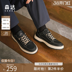 森达工装板鞋男春秋商场同款低帮免系带真皮休闲运动板鞋1SR01DM4