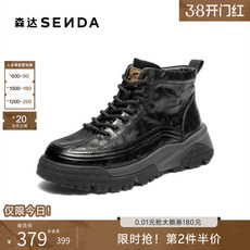 森达马丁靴男冬新商场同款户外厚底防滑加绒保暖休闲皮靴DB012DD5
