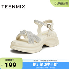 天美意新款商场同款时尚水钻厚底女一字带凉鞋BK941BL5