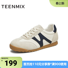 天美意春新款商场同款平跟复古百搭德训鞋女休闲鞋BJ311CM4