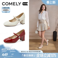康莉高跟玛丽珍鞋女2025年秋季新款漆皮粗跟单鞋商场同款55358