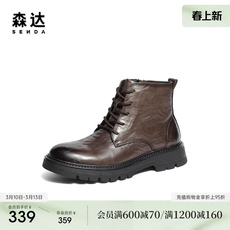 森达马丁靴男2025冬新商场同款抓纹厚底休闲短皮靴2AM01DD5
