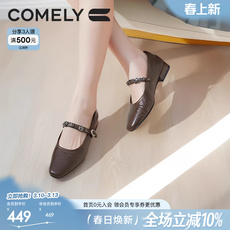 康莉商场同款粗跟真皮玛丽珍鞋女春季新款低跟复古优雅小皮鞋