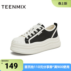 天美意春新款商场同款厚底百搭帆布小白鞋女休闲鞋BJ782CM4