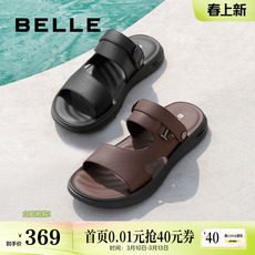 百丽男鞋沙滩凉鞋皮凉鞋夏季商场同款休闲真皮户外拖鞋男7YG01BL3