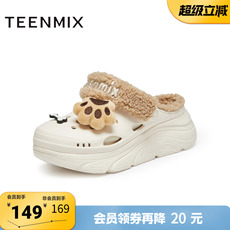 天美意冬新款商场同款毛绒保暖可爱百搭女洞洞鞋CMX12DL4